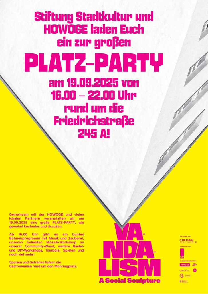 17.00 Uhr Vorstellung LOA Kunstsommer: „VANDALISM – Social Sculpture“, Jan Kage (Künstlerischer Leiter LOA) & Helene Bosecker, Jury-Mitglied LOA Berlin, roam project space