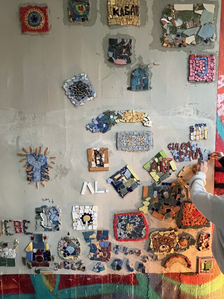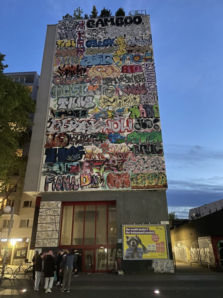 Der Auftakt zu LOA Berlin 2025 am Mehringplatz war ein voller Erfolg! 3 Tage lang haben gut 50 Graffiti-Künstler:innen die Fassade der Friedrichstraße 245 A besprayt, getagged und gerollt. Am Freitag und Samstag nahmen Schüler:innen und Anwohnende die Einladung zur Gestaltung unserer Community-Wand sehr gerne an und legten ihre eigenen Mosaike. An unserer gedeckten Tafel kamen wir mit Passant:innen und Nachbar:innen ins Gespräch, die ganz überwiegend begeistert von dem künstlerischen Konzept und der Umsetzung waren. Das Ergebnis kann sich wirklich sehen lassen! Auf Grund der tollen Resonanz und in Absprache Brad Downey haben wir uns nun spontan entschlossen, die Wand nicht zu überstreichen. So wird sie bis zum Aufbau des Gerüsts zur baulichen Vorbereitung und Anbringung der Fliesen im Juli weiterhin für die Öffentlichkeit sichtbar bleiben.